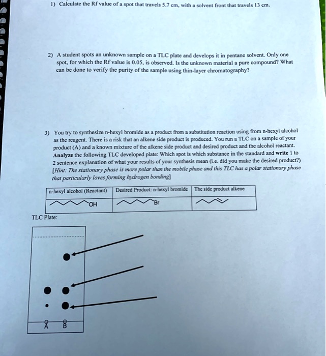 Solved Calculite The Rf Value Of 4 Xpot That Travels 5 7 Cm With Solvent Front That Travek I3cm Student Pols Unknown Sample Tlc Plale And Develops It In Pcntane Solvent Only One